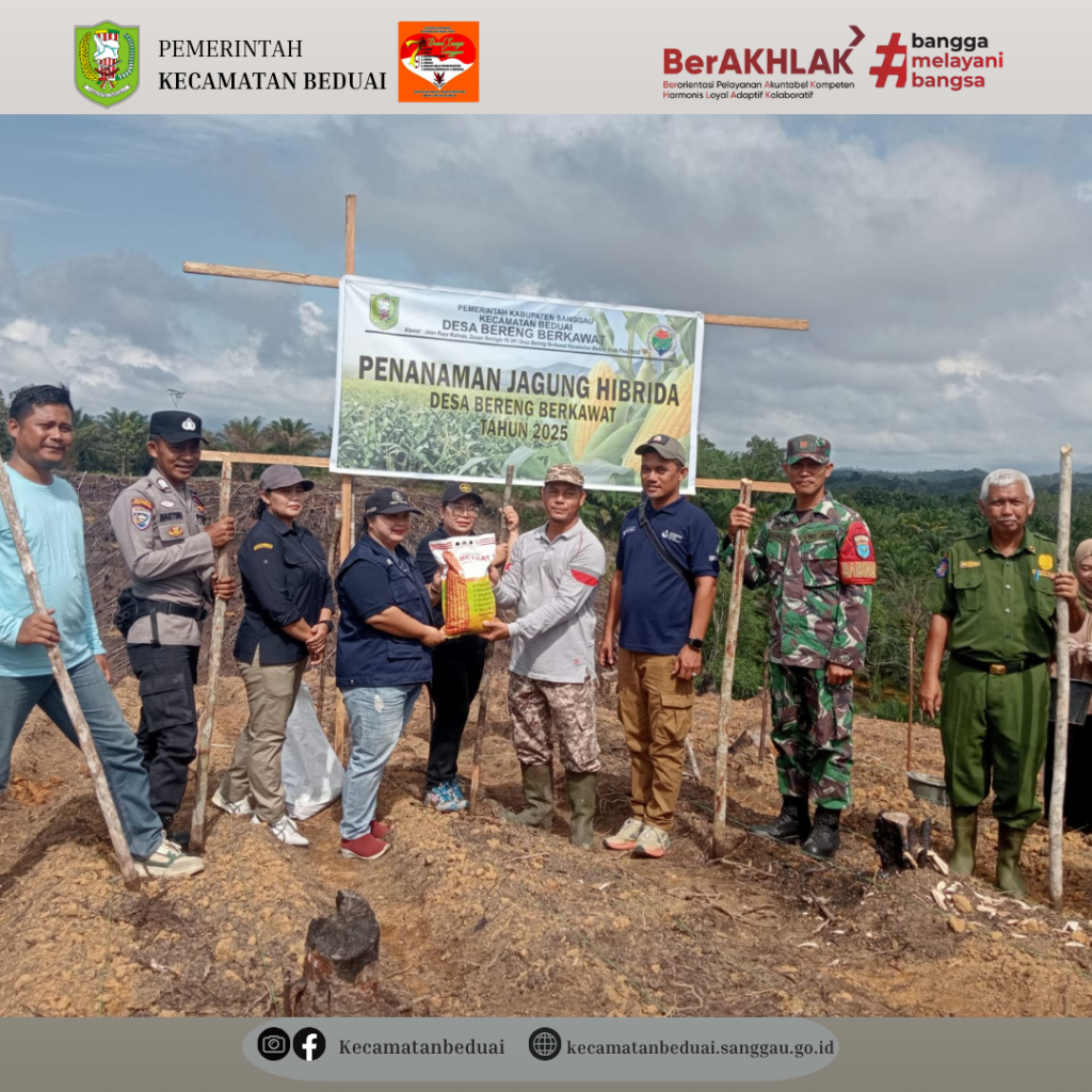 Camat Beduai dalam hal ini diwakili oleh Nurdin, S.ST selaku Kasi Trantib menghadiri undangan kegiatan Penanaman Jagung Hibrida Desa Bereng Berkawat Tahun 2025 yang merupakan Program dari target Presiden Prabowo Subianto untuk memperkuat ketahanan pangan nasional melalui beberapa langkah: